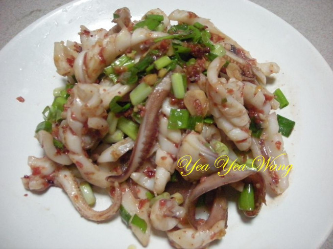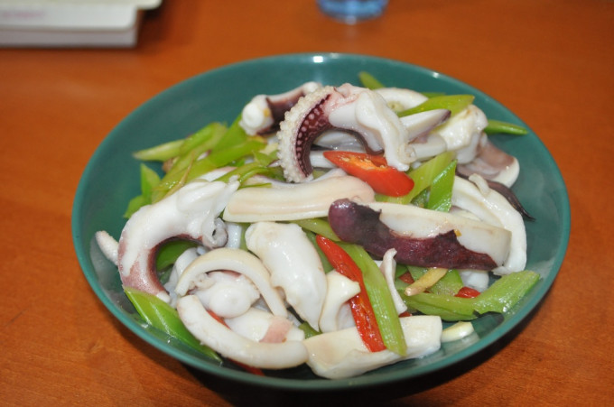 食材 : 薑片.辣椒, 花枝, 芹菜, 烏醋, 鹽, 胡椒