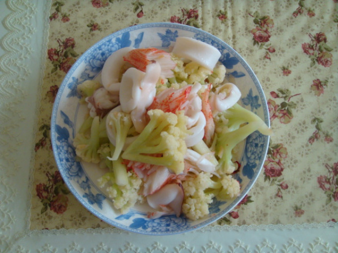 食材 : 花椰菜, 透抽, 蟹肉棒, 米酒, 蒜末.辣椒, 鹽