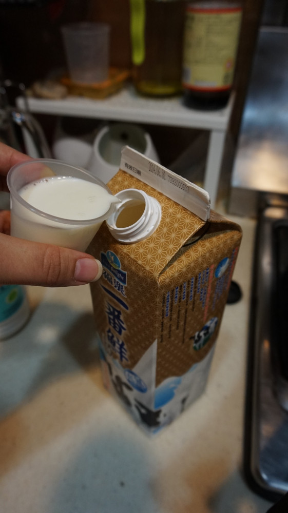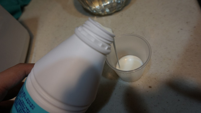 優格機附有50c.c.的量杯倒出50c.c.優酪乳備用