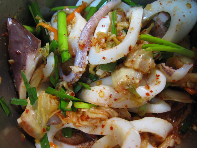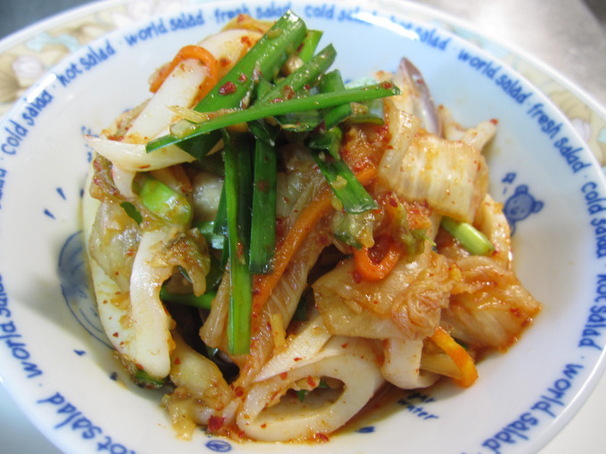 泡菜的嗆辣+久菜的鮮嗆*小巷的海味=口水直流的好料理。