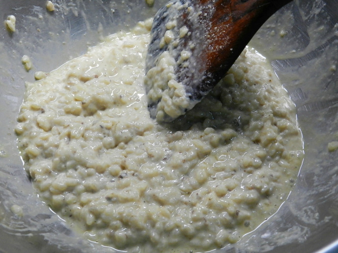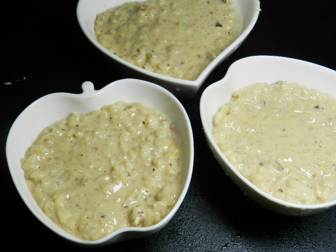 等煮好的牛奶粥冷卻後,拌入兩個雞蛋