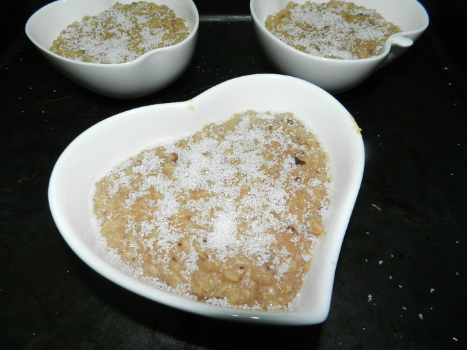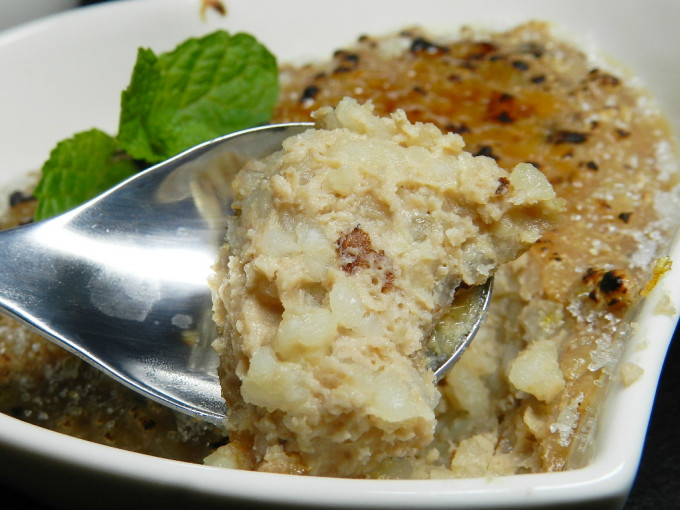 出爐的米布丁就可以吃ㄌ喔!也可以像我撒上一些糖,用噴槍做成焦糖~