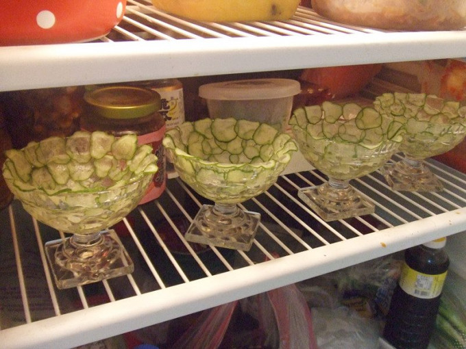 把撲滿小黃瓜的杯子放在冰箱冰鎮10分鐘。