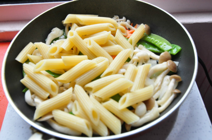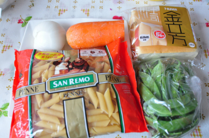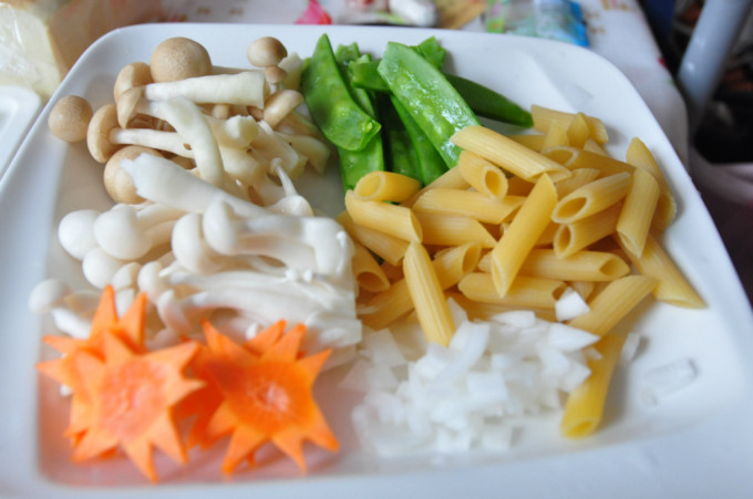 將食材洗淨做處理,義大利斜管麵放入滾水煮熟