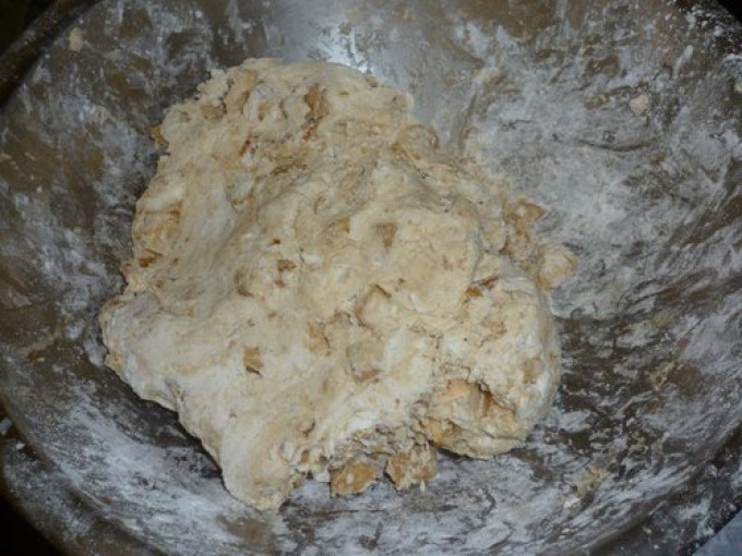 將用蝦米和紅蔥爆香略炒後下芋頭丁(要切成絲還是丁看個人的口感皆可)略炒調味,調味料是醬油、少許的鹽、糖、胡椒粉、五香粉略悶,這時就可以試一下味道做調整,由於等一下要和粉糰,所以味道不要太淡喔,再將炒好的芋頭和已和均勻的粉糰(將兩種粉加上400g的溫水先形和成糰)全都和在一起囉,這時候已經有芋頭料香香的味道出現囉