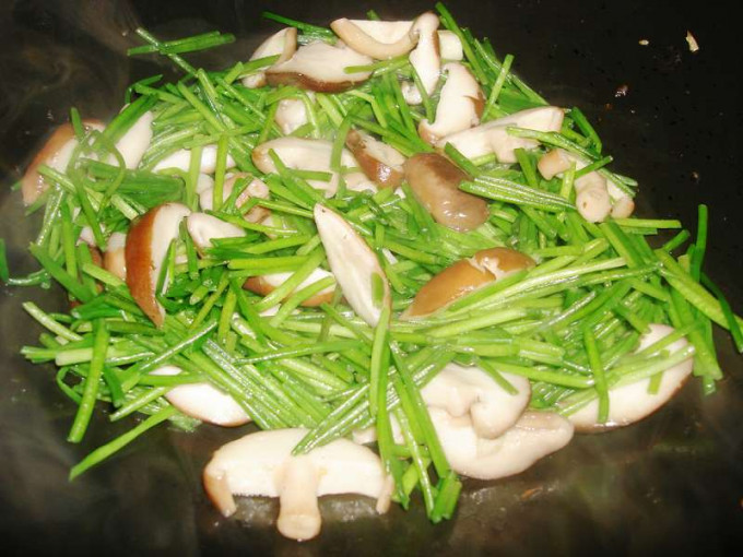 熱鍋倒點油,爆香蒜頭,把水蓮加入拌炒至熟成後,加點鏗魚粉即可備用...