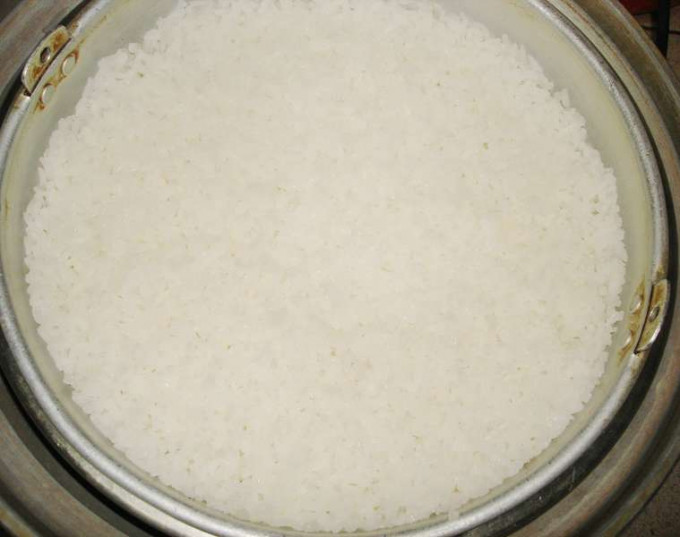把米洗淨後,以1:1加入水後,隔置10-15分鐘入電鍋蒸熟備用...
