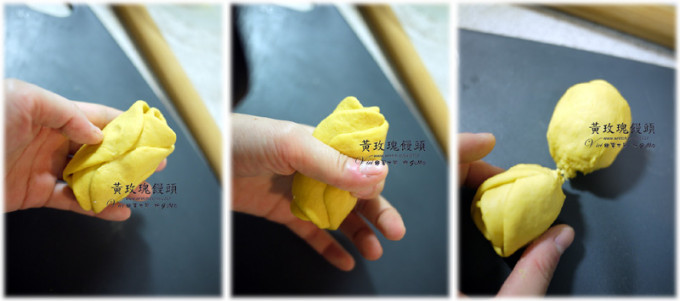 接著用手掌心的力量去搓揉麵團,直到三光程度。三光程度用手揉麵團約不到十分鐘