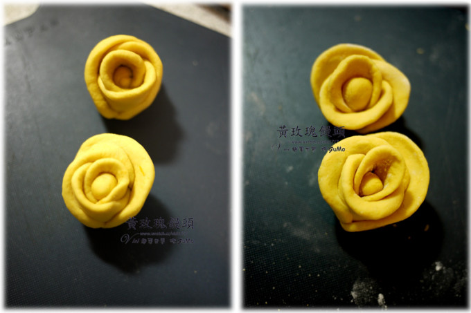 3.右邊為再次發酵後的玫瑰花饅頭,這時又比左邊更大了
