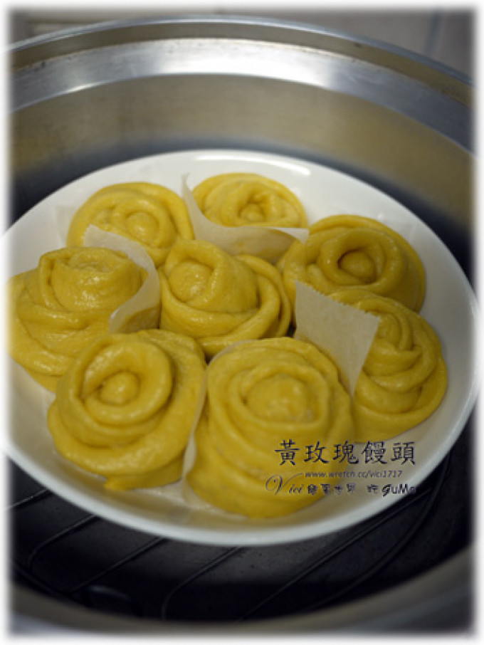 只要蒸12分鐘,一盤漂亮 優雅 高級的黃玫瑰就出籠了