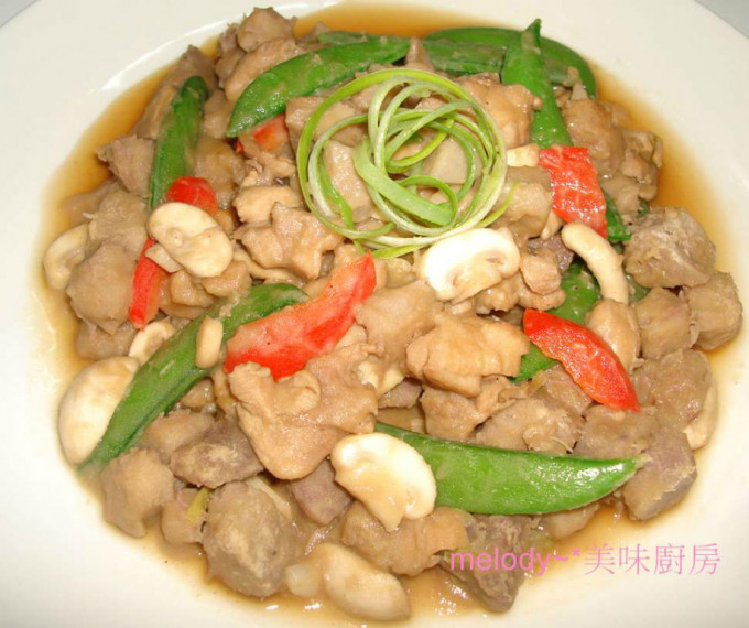把甜豆、磨菇、甜椒加入拌炒熟成即可...