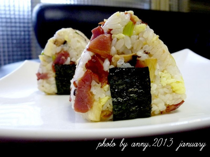 話說飯糰的由來是當初日本武士在戰爭時的攜帶式糧食,到了江戶時代,飯糰已成為民間百姓的日常食物之一,這轉變到後來就成為江南一帶農家的果腹主食,往往早上吃完,可以直到中午都不覺得餓喔~宜蘭鴨賞是宜蘭特產,當地「四寶」之首,我就用宜蘭行健有機米和美味鴨賞來綁架您的味覺!每口都是難忘好滋味呦\^O^/~