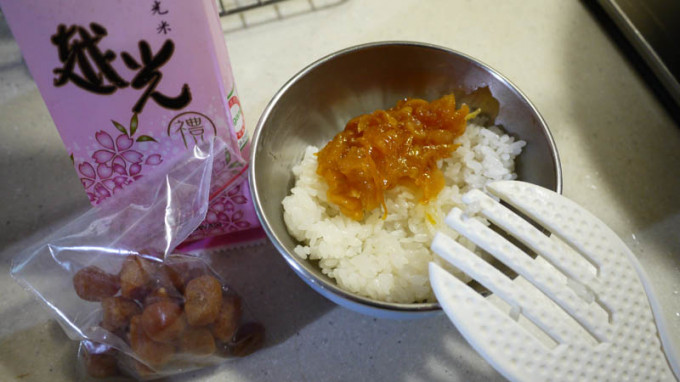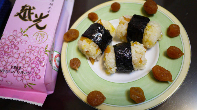 用宜蘭五結有機米加上宜蘭當地的金桔蜜餞做成好吃的甜飯糰,將飯糰作成一口大小,方便食用.吃起來頗有過年的氣氛,正好呼應新年的到來.