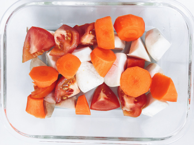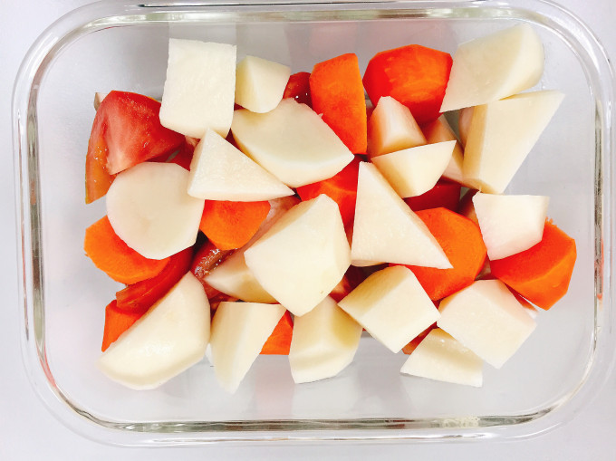 放入後可以攪和一下 或想要馬鈴薯較入味可放最上層