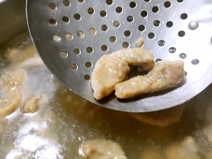 撈起肉條備用