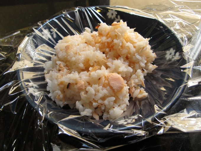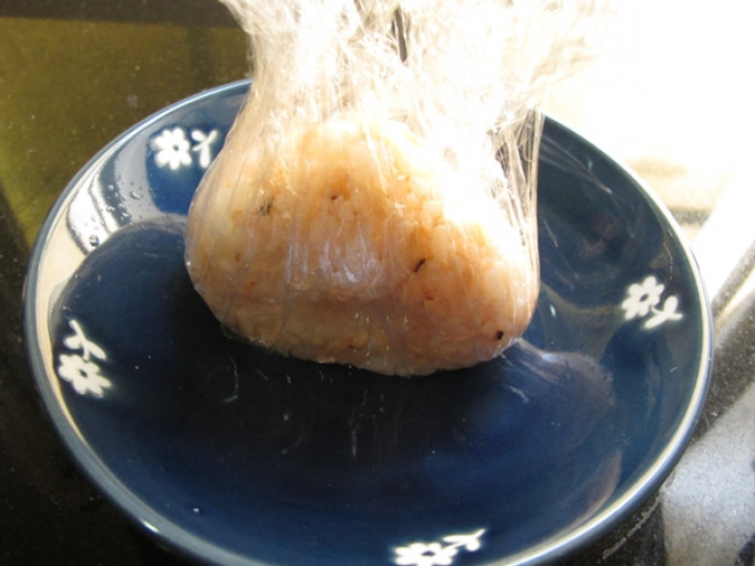 煎香的鮭魚拌入調味後的熱飯中,趁熱捏成飯糰,再包上一片海苔,營養又美味, 當正餐或點心都合適~^^