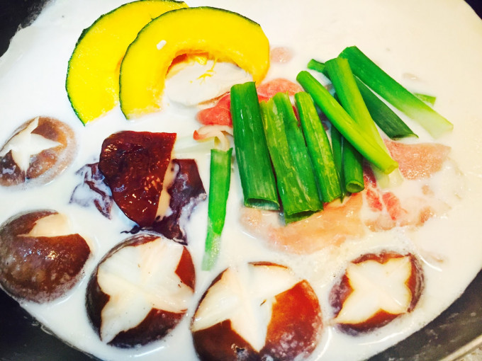 食材熟的差不多後 再以冷開水把味噌調開加入喔 加入味噌後稍煮個兩三分鐘就可以熄火開動
