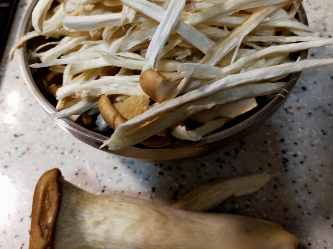 再者,把杏鮑菇剝成絲