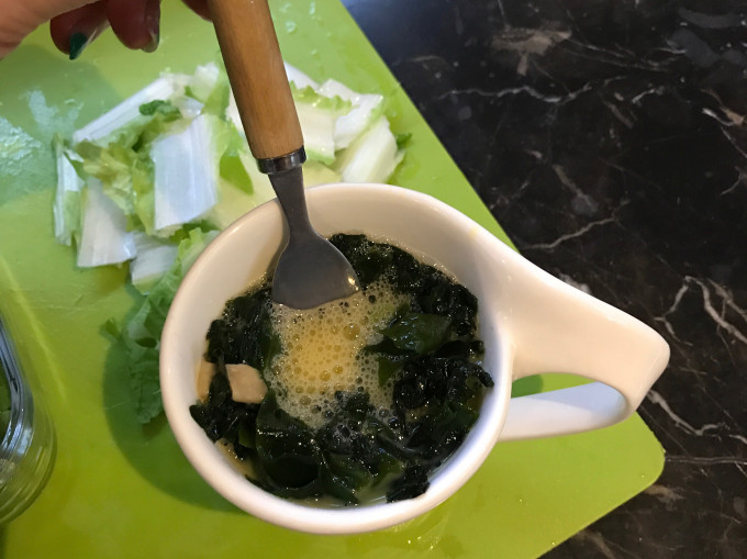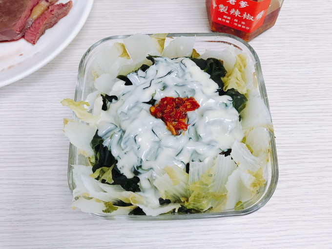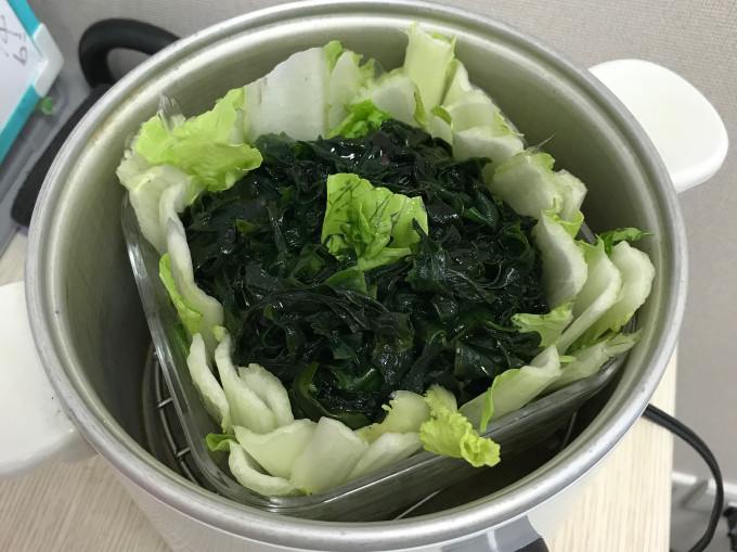 電鍋做午餐-健身飲食-海帶蒸蛋菜丼