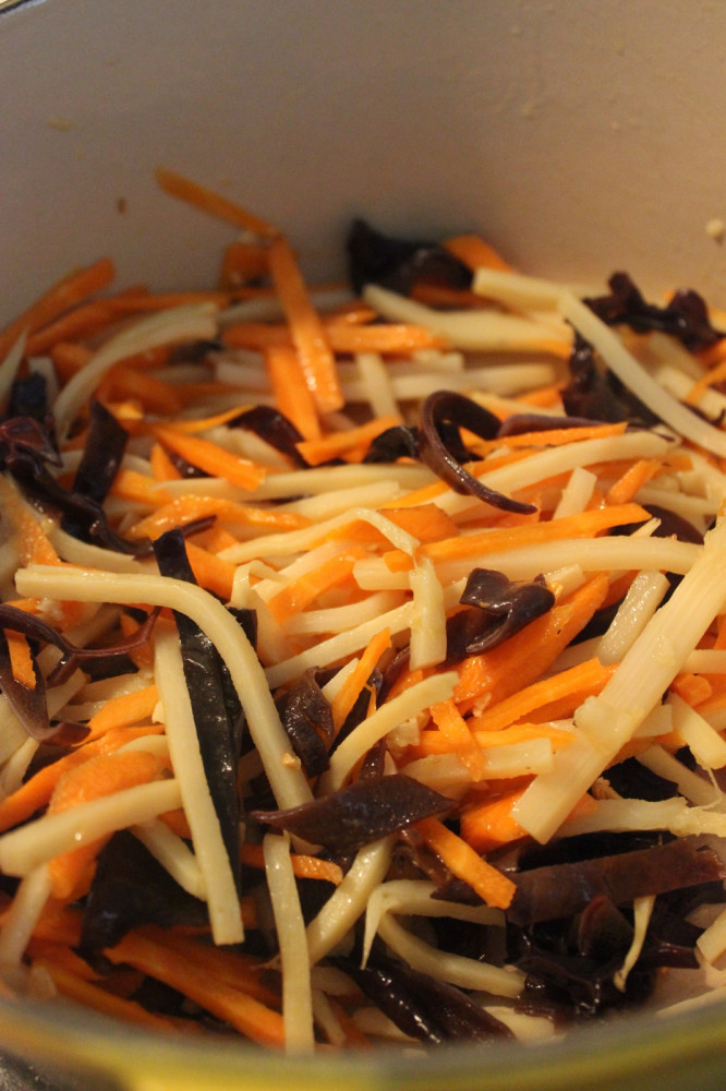 放入胡蘿蔔~黑木耳~筍絲拌炒
