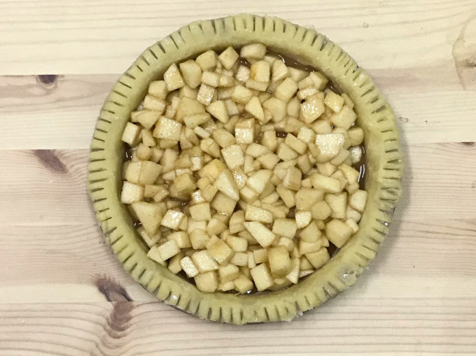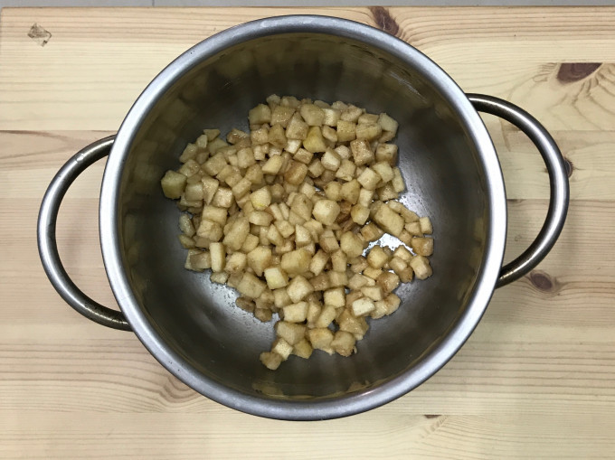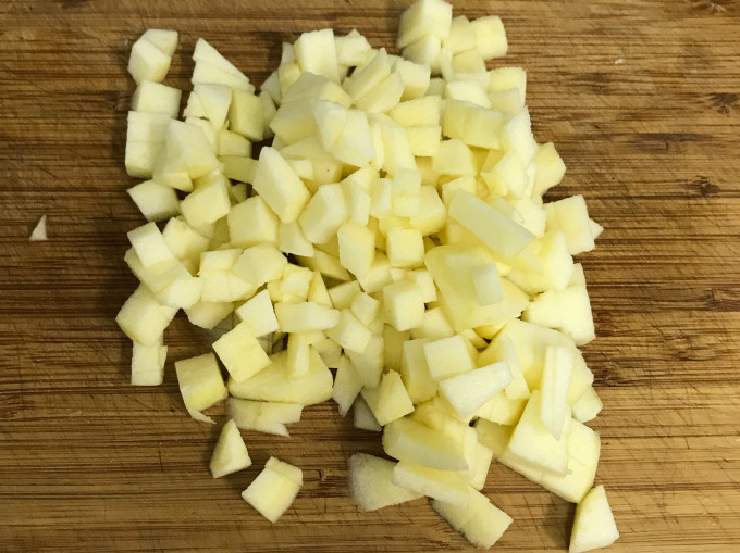 將糖,玉米粉和肉桂混合在中碗中,加蘋果攪拌均勻。因為加糖,等一下會出汁