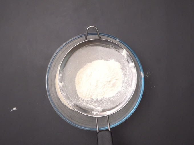 高筋麵粉、低筋麵粉過篩倒入碗中,再加入速發酵母、糖、奶粉、蛋黃、水混合均勻、搓揉成團。