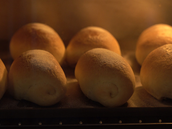 放入烤箱,以上火230度、下火200度烤15分鐘,8分鐘時調頭,麵包上色後可以先關閉上火。