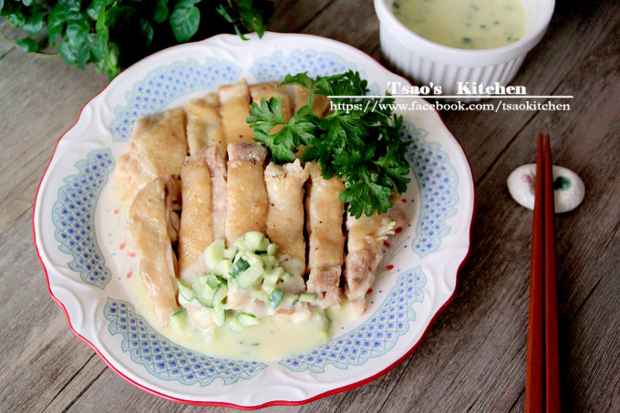 煎好的雞腿排切塊後,淋上一大匙雞油,再淋上小黃瓜優格醬,簡單清爽的雞腿排就完成啦~~♡