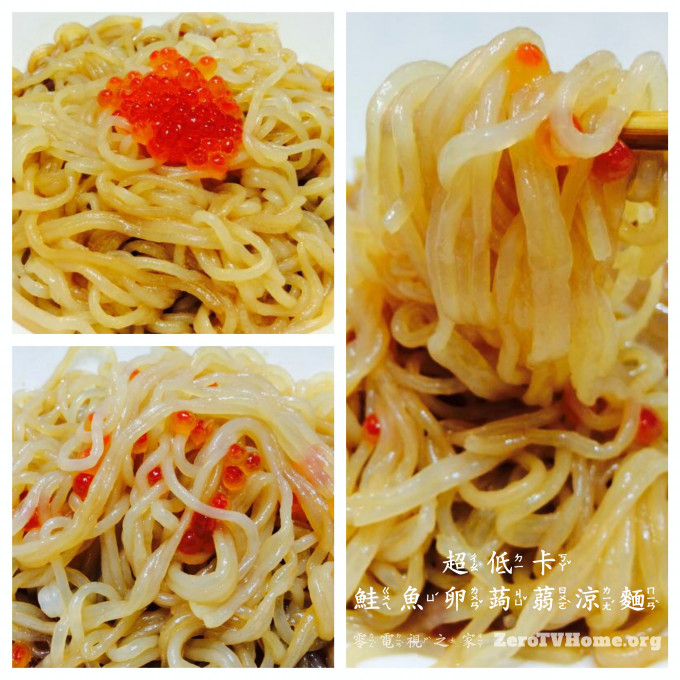 麻麻超愛吃鮭魚卵的,所以在蒟蒻麵上方加兩匙鮭魚卵。