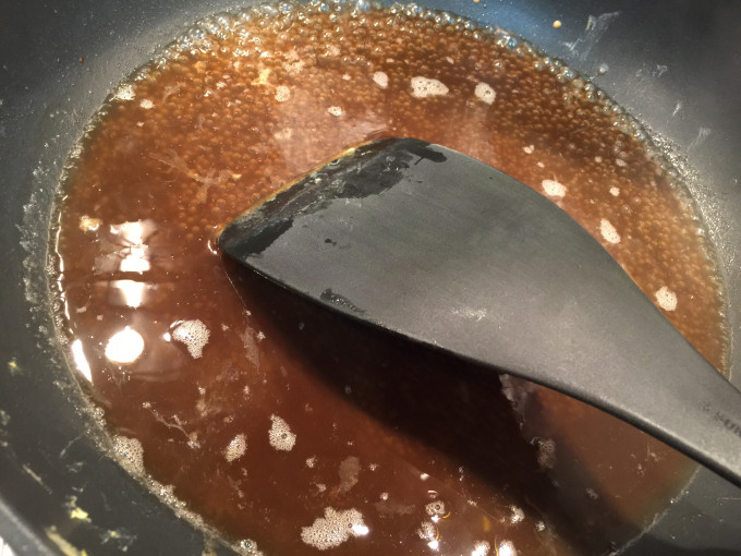 準備做 , 把 混合然後倒進鍋中用中小火拌至沸騰。然後倒太白粉水收汁,把汁淋到蛋飯上。