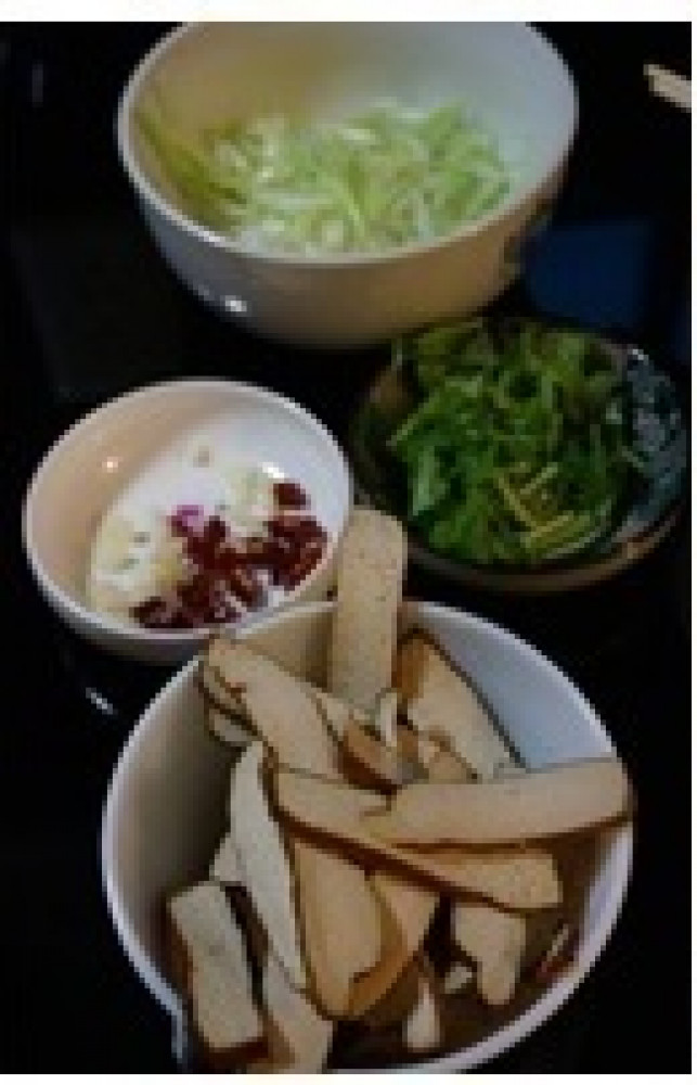 再放上蒜苗絲及香菜絲即可完成!冰入冰箱再吃更好吃!