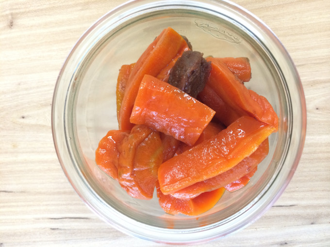 取出紅蘿蔔(裡面應該已經有紅蘿蔔自己分離出的水分)並倒入檸檬汁 蜂蜜 冷開水(視情況增減) 在爐上小火慢煮道胡蘿蔔完全熟透 放涼即可充填入罐保存