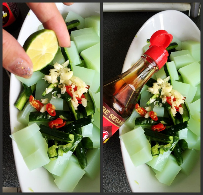 加蒜末辣椒擠檸檬汁再滴上香油_
