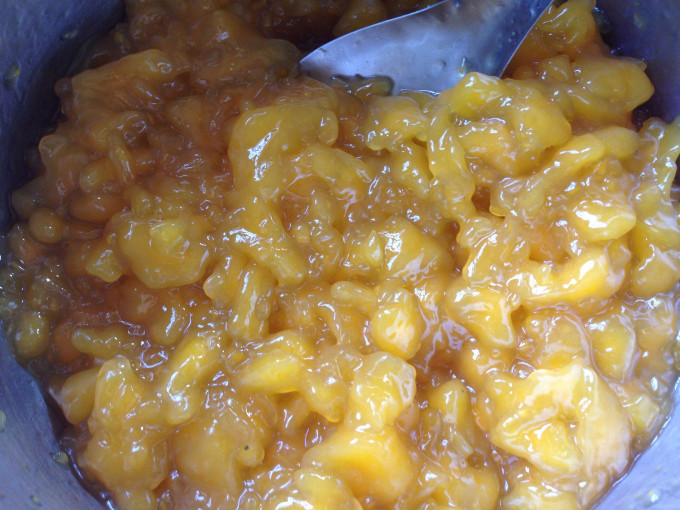 取一小容器放些許糖水,將煮熟粉角拌入糖水中,攪拌攪拌! 黃金粉角完成!!