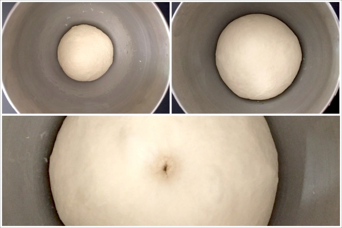 將攪拌均勻 基本發酵1.5小時後 拌入揉至光滑再完全發酵30分鐘至指壓麵團不會回彈
