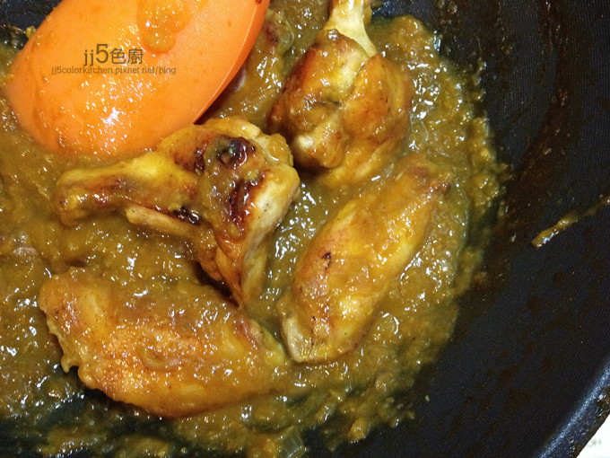 移到盤子上,灑上蔥花及紅胡椒粒點綴。 照片上沒淋上太多醬,其實沾滿醬吃真的很好吃。可以把醬淋在雞翅上,或裝在小缽沾著吃。適合配飯吃,但最對味的是配啤酒或Margarita,就像吃水牛城辣雞翅那種feel!