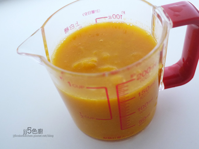 土芒果去皮去籽,取出果肉。把所有果肉刮出來,用湯匙壓成泥狀。土芒果味道特別濃,讓醬汁充滿濃郁芒果味。用其他芒果品種也是可以的。