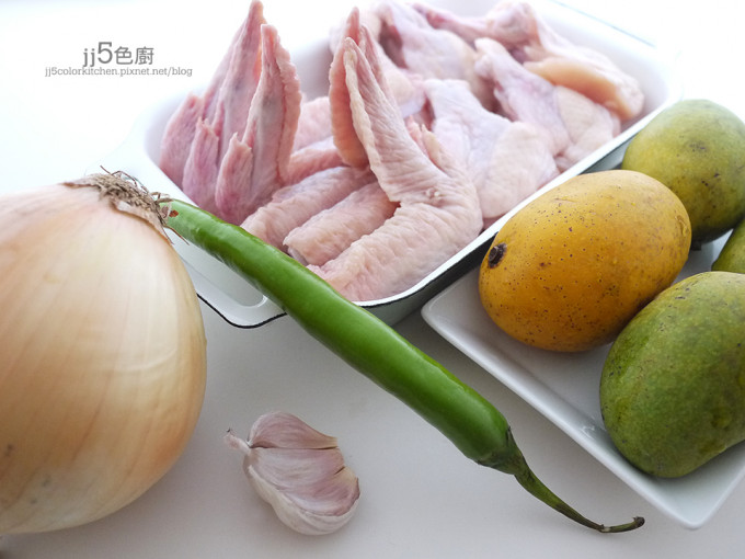 土芒果,土雞翅、搭配有夠辣的台灣本土青辣椒。