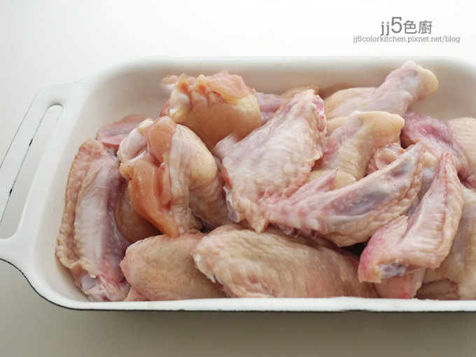 三節翅剁開。全部買中段或小雞鎚也行。用料醃15分鐘。