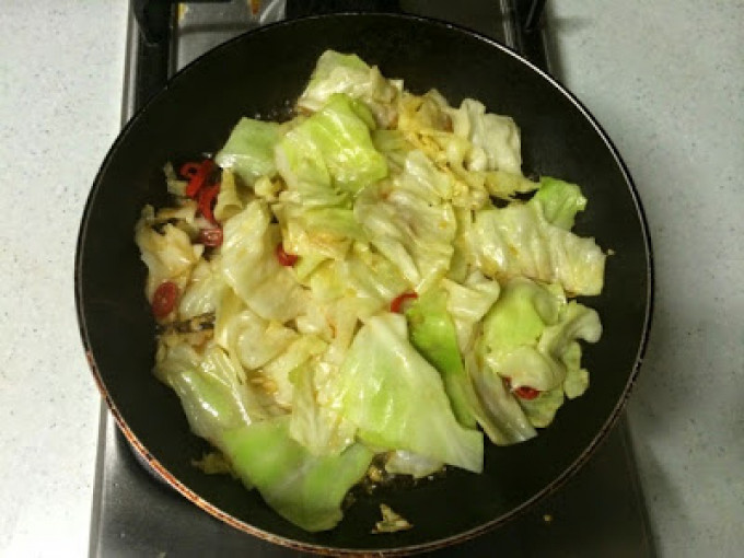 酸酸辣辣的口味真的很下飯。 炒好的高麗菜非常的清脆爽口。