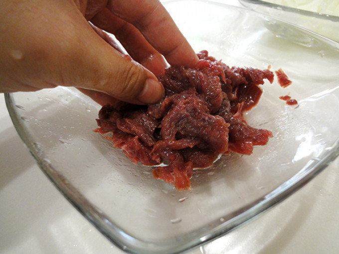 鴕鳥肉片下鍋,煮至七分熟即可。