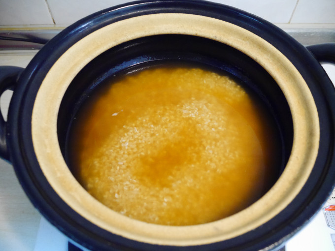 蓋上鍋蓋,開大火,滾開後轉最小火煮15分鐘,然後關火悶15分鐘,途中不可開蓋。香噴噴的牛蒡炊飯完成,若不夠鹹可以燜好後趁熱在加些鹽調味。