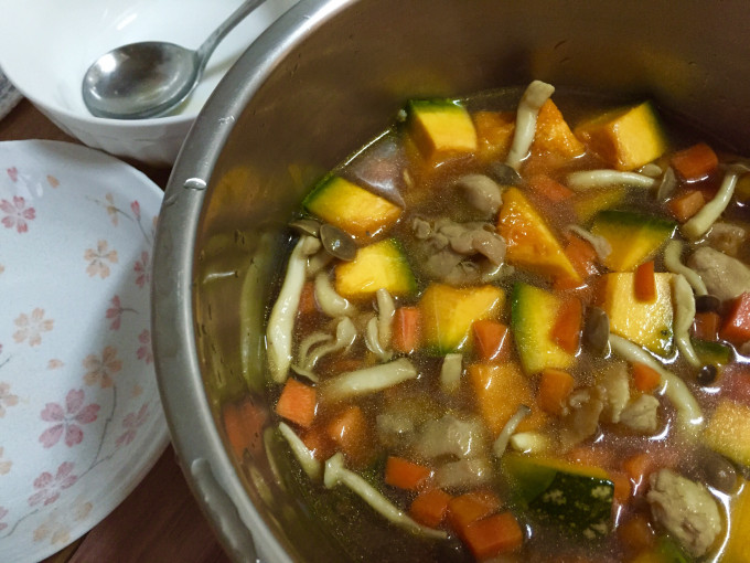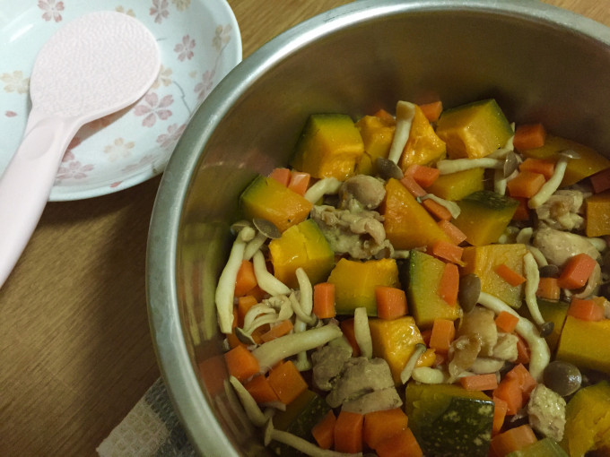 炊飯裏香甜鬆軟的南瓜搭配煮到入味的雞肉,好吃又有飽足感,是簡單方便的電鍋料理。