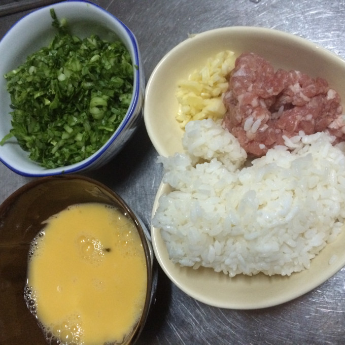 再來把其他材料準備好後,就可以起鍋倒油了。因為這次使用的是瘦絞肉,所以需要一點油來潤滑。