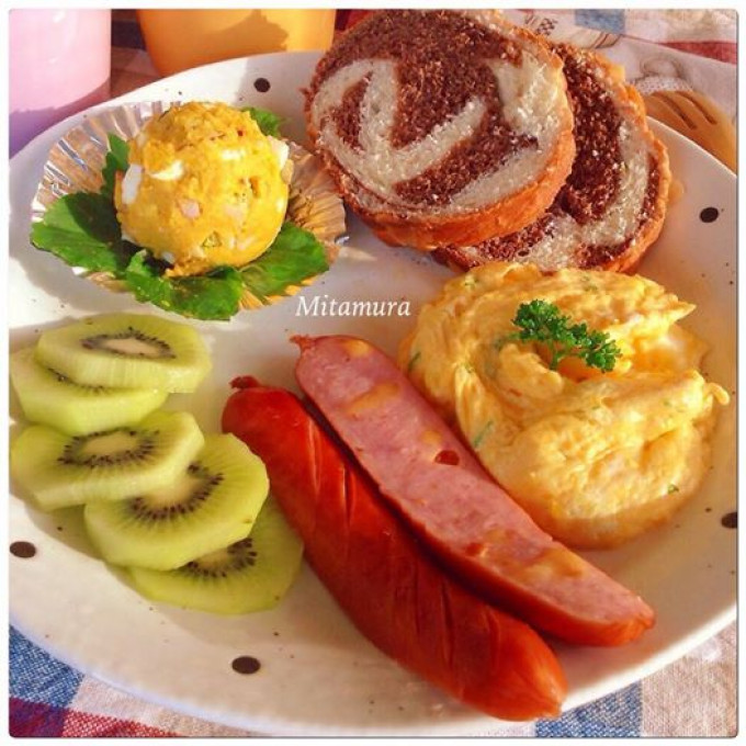綿密的南瓜泥中,拌入香濃的水煮蛋,火腿丁,洋蔥,小黃瓜,多層口感,美味可口,早午餐最佳副菜,單純吃也好吃的不得了~