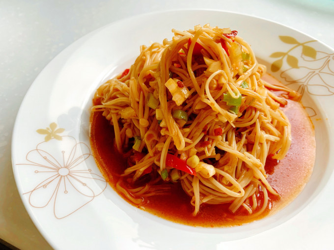 金針菇營養價值很高,有維他命 B1、B2、醣類、菸鹼酸、鐵、鈣、鎂、鉀等成分,可提高免疫力,改善皮膚。此外,金針菇含有豐富的膳食纖維,能促進大腸蠕動,改善便秘問題。踏入夏天,天氣炎熱,胃口不佳,大家可以試試用金針菇做涼菜,非常下飯開胃。