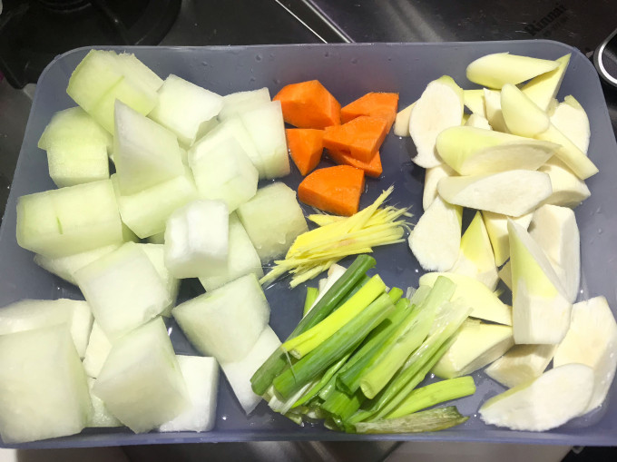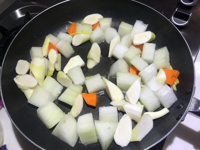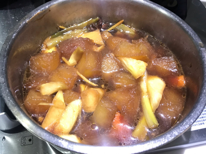 倒入調理鍋。倒入食用水剛好淹到冬瓜平