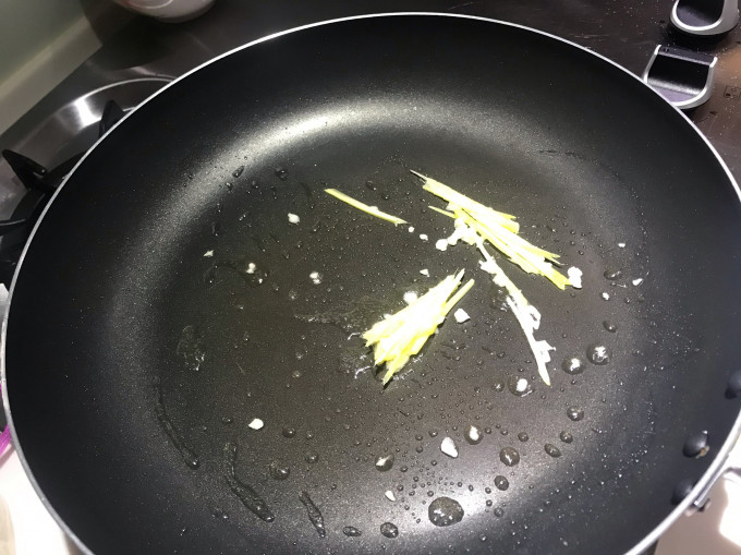 放入蔥段。可選擇不要放甘樹子(破布子)因為怕會大口配飯而咬到子或吞了子⋯