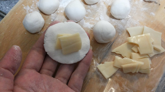 包入適量起司片或牽絲的乳酪絲,縮口捏好才不會爆漿哦!包好入滾水煮熟即可~